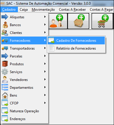 Para entrar no cadastro dos fornecedores basta seguir os passos da imagem acima.