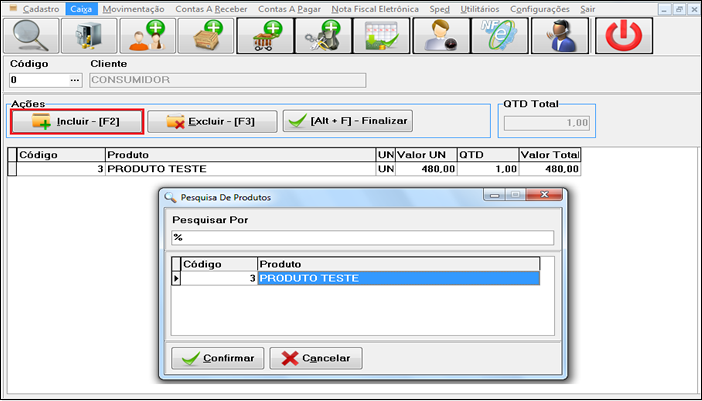 Digite o código do cliente que fez a devolução, e inclua os produtos da condicional relacionados com o cliente, clique em "Finalizar", [Alt + F] no teclado, e confirme a devolução da condicional.