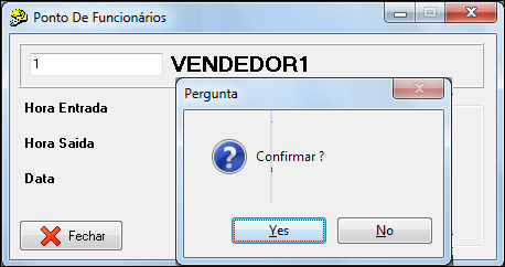 A janela de "Registro de Ponto" abre, basta colocar o código e confirmar.