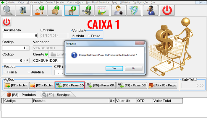 Após clique em "Puxar CO", [F4] no teclado, e confirme "Yes".