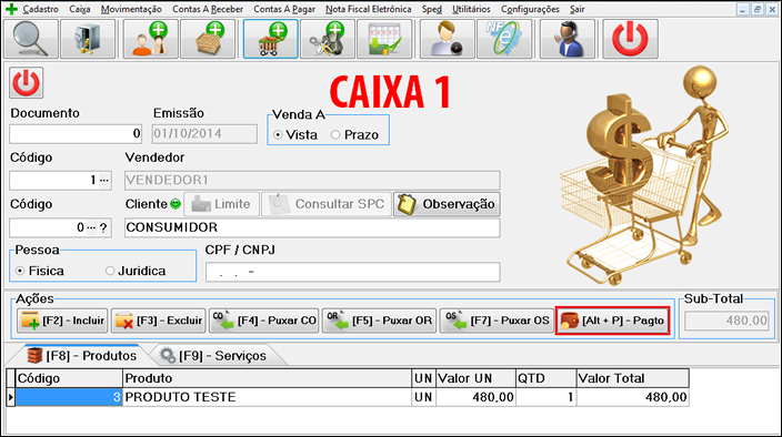 Finalize a venda clicando em "Pagto", [Alt + P] no teclado.