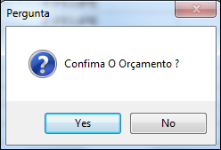 Aparecerá a pergunta se deseja confirmar o orçamento, clique em "Yes", e o orçamento será lançado novamente.