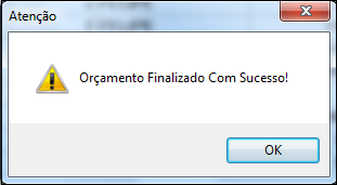 Feche a tela de incluir produtos no orçamento, e clique em finalizar.